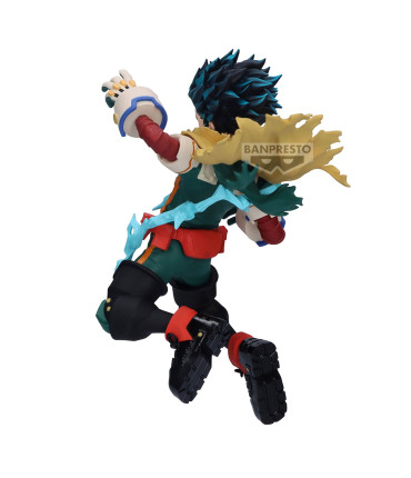 Voici une figurine dédiée à l'emblématique Izuku Midoriya, provenant de la célèbre licence My Hero Academia.